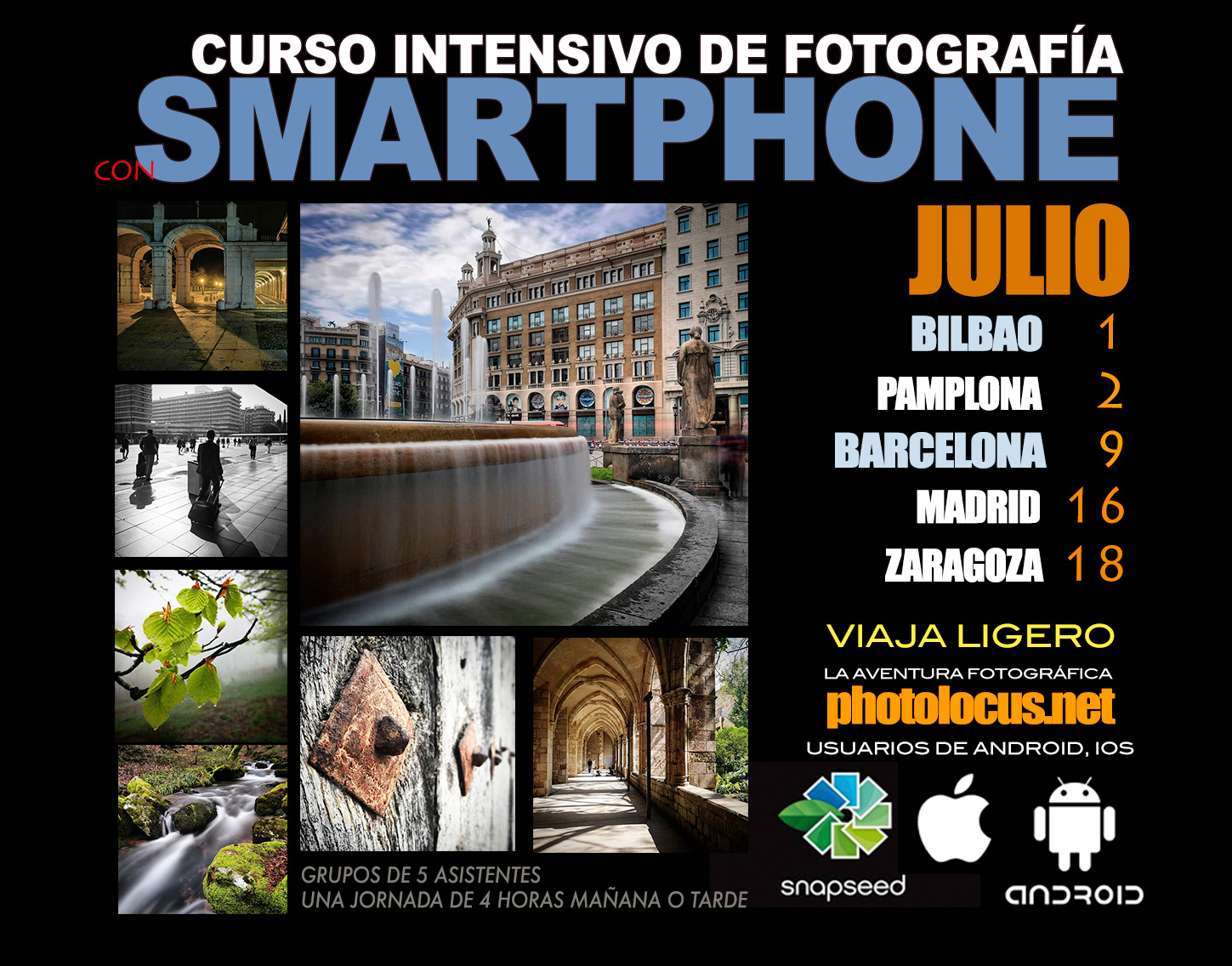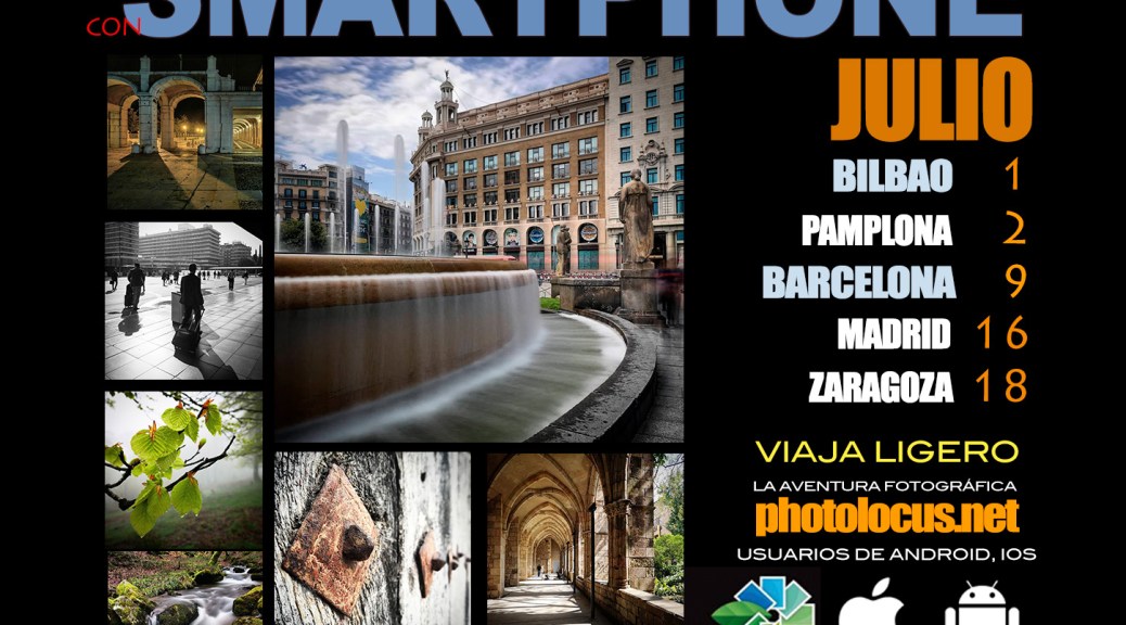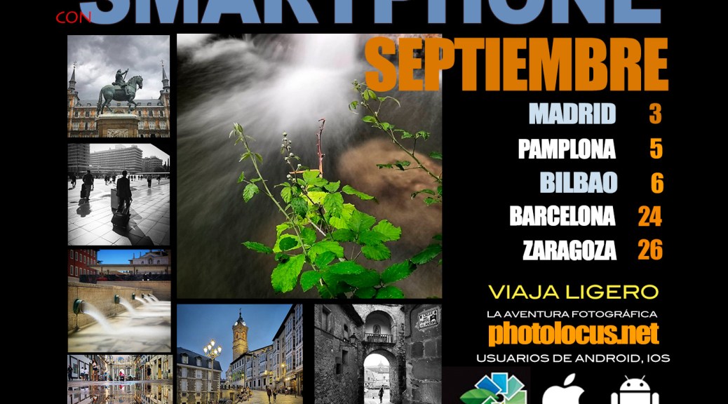 Ya tienes disponible como cada mes el calendario de los cursos intensivos de fotografía de viajes con smartphone que realizaremos en Barcelona, Madrid, Pamplona, Zaragoza y Bilbao.