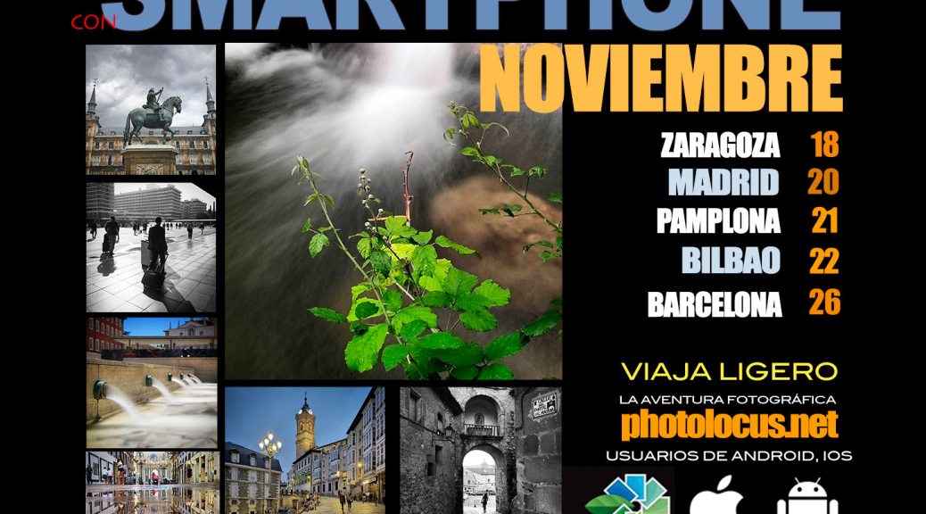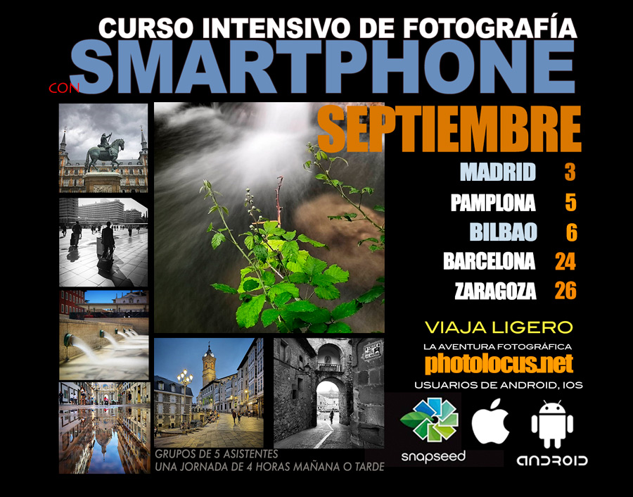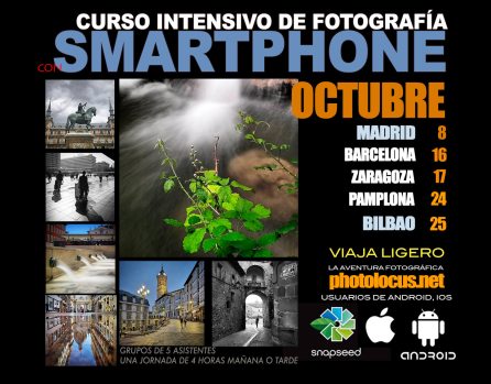 Ya tienes disponible el calendario de los cursos intensivos de fotografía con smartphone para este mes de noviembre en Madrid, Barcelona, Zaragoza, Bilbao y Pamplona.