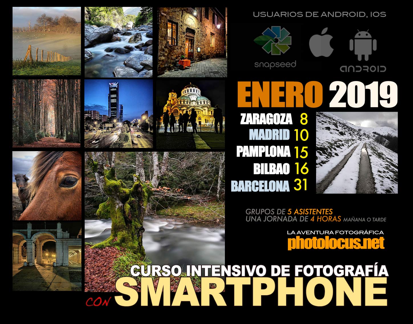 Ya tenéis disponibles el calendario de los cursos intensivos de fotografía con smartphone que se celebrarán en mayo con Photolocus.net y que como cada mes hacemos para grupos máximos de cinco personas en ciudades en turno de mañana o de tarde, y que tratan de forma efectiva en tiempo récord, las diferentes técnicas y ajustes para sacar el partido a la cámara de tu smartphone y a todas las situaciones que fotografías en viajes para tus vacaciones. Más información pinchando sobre la imagen o bien aquí.