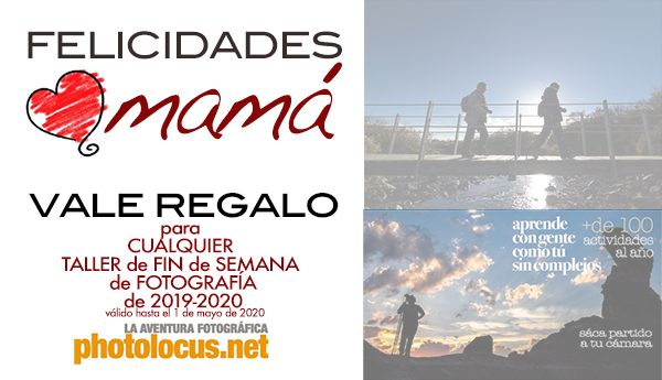 Como cada año, nos gusta comunicarte que hasta el primer domingo de mayo, el día 5 día de la madre, tienes de tiempo si quieres, para darle una sorpresa a tu madre, con éste Vale Regalo, muy especial*, y que puedes adquirir en nuestra tienda on-line, válido para cualquier taller de fin de semana hasta mayo de 2020 y al que además puedes TÚ TAMBIÉN puedes venir con ella y acompañarla en esa estupenda jornada, para que podáis DISFRUTAR JUNTOS de esa pasión que tiene, la fotografía y para la que siempre está deseando poder escaparse…..!!! y ésta vez contigo también.