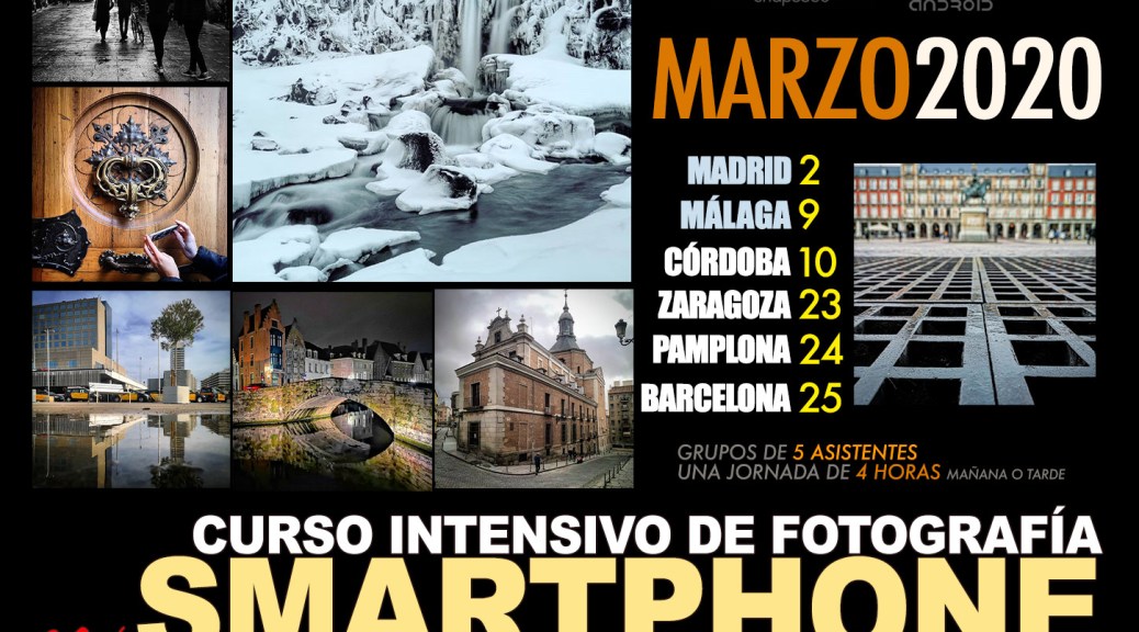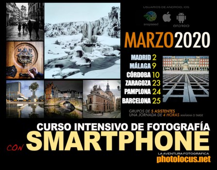 Ya tienes disponible el calendario de los cursos intensivos de fotografía con smartphone para este mes de noviembre en Madrid, Barcelona, Zaragoza, Bilbao y Pamplona.